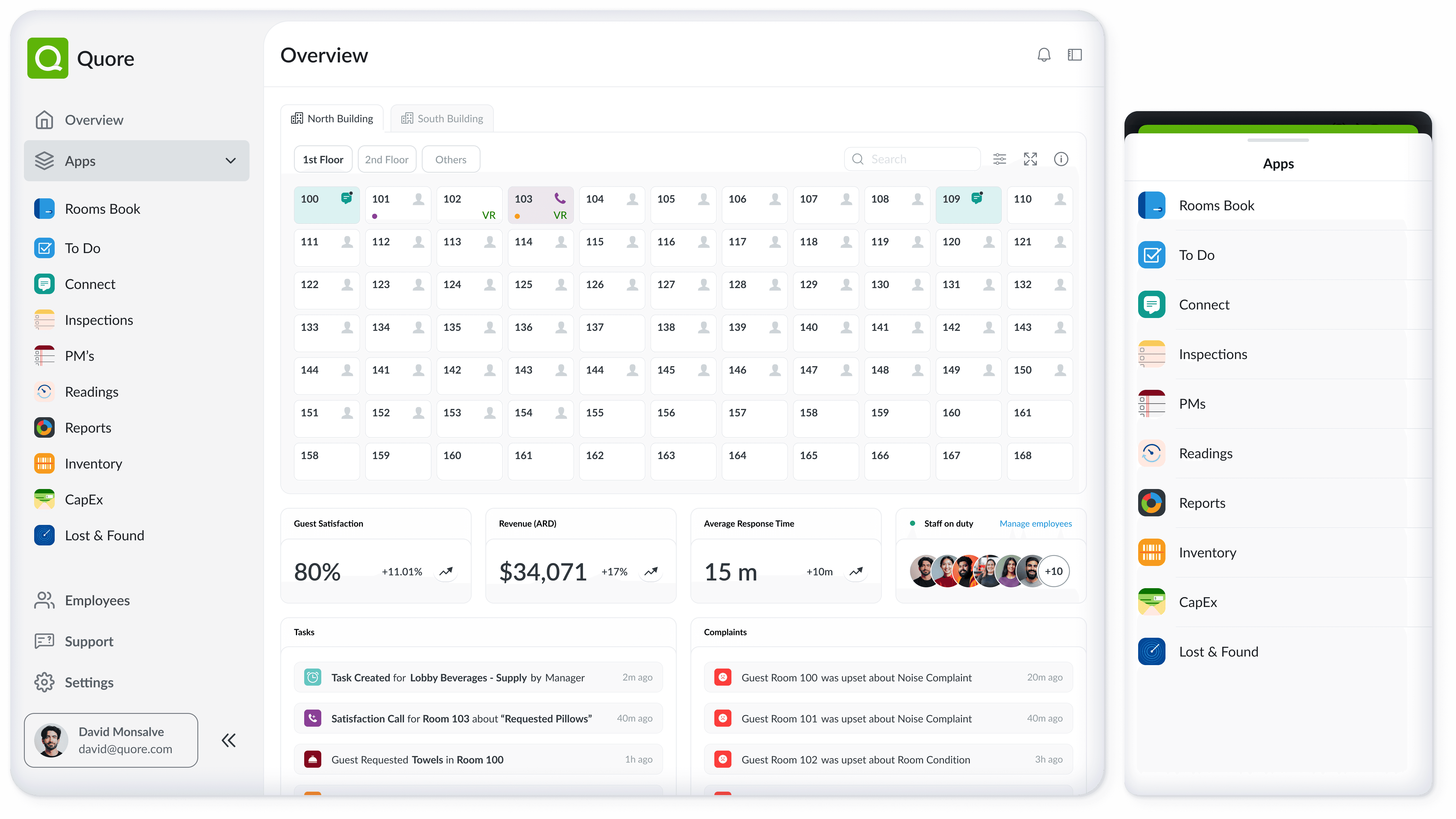 Quore is a multi-product operational platform used daily by hotel teams across housekeeping, engineering, and management. The product supports time-sensitive tasks such as inspections, maintenance, approvals, and room operations, often performed on the go.