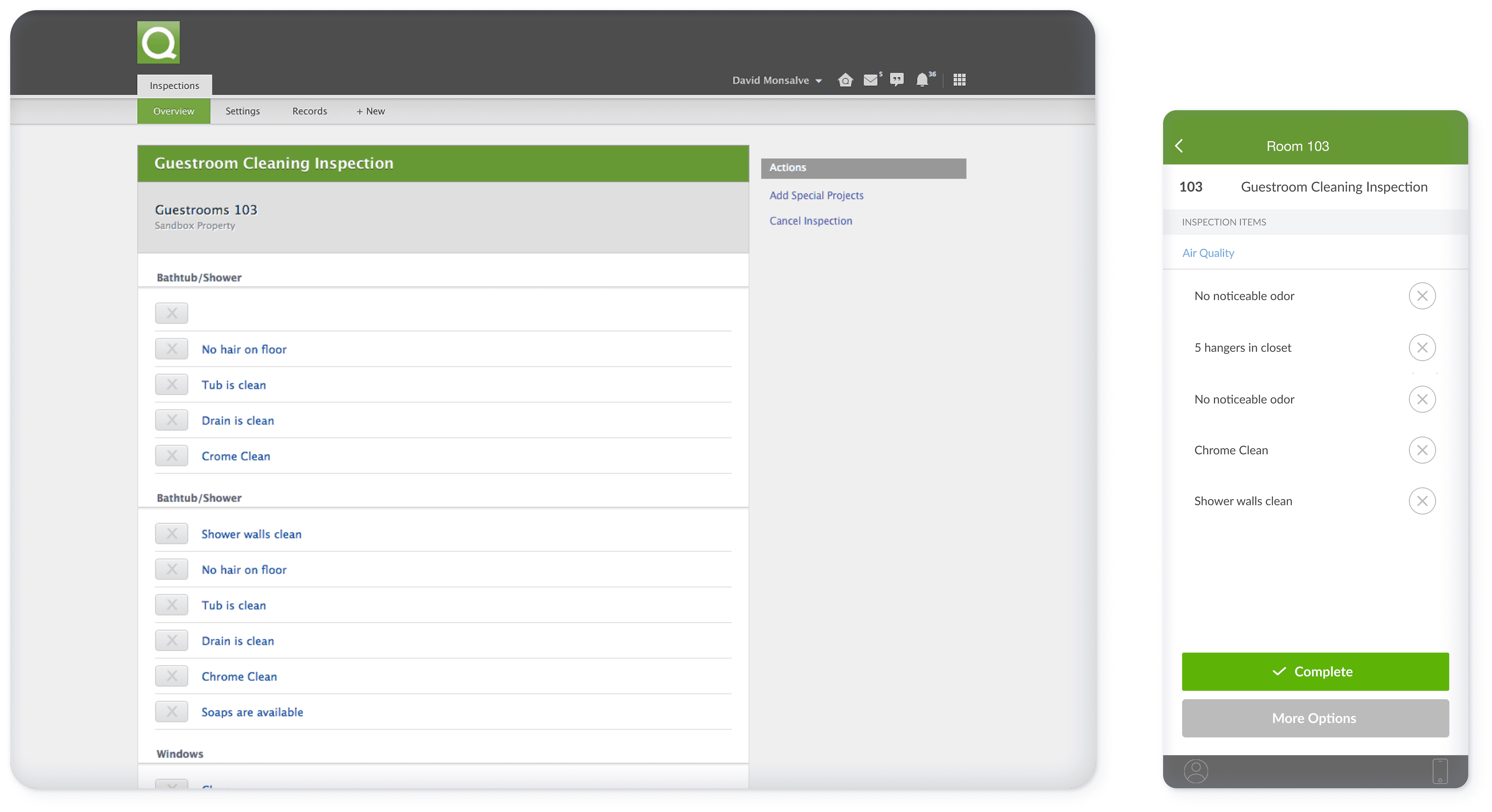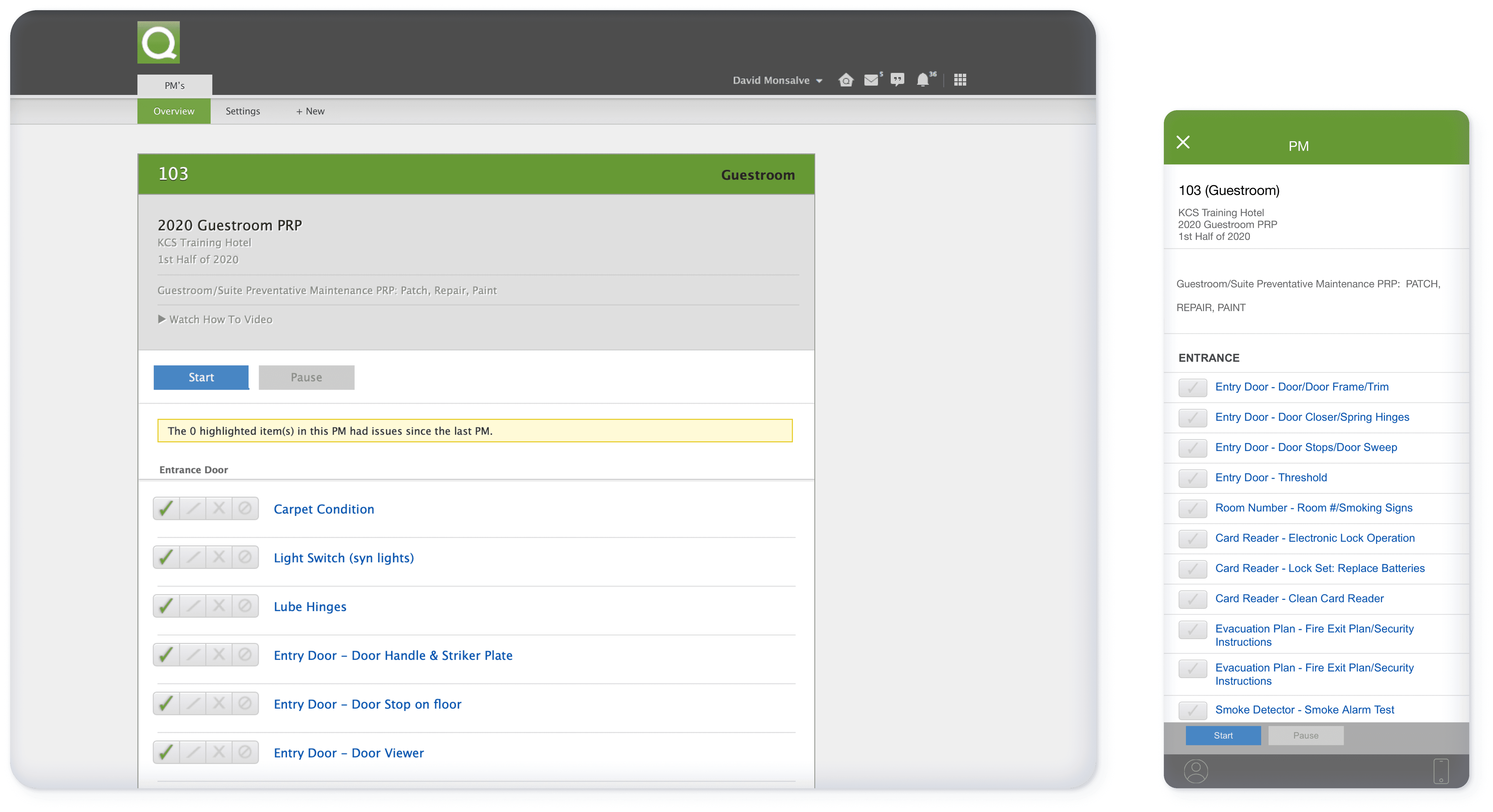 Actions were grouped into clear categories, including maintenance, inspections, housekeeping, and requests, to avoid overwhelming users.